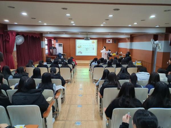 [미디어라이프(medialife)] 동두천시는 6일 동두천 여자중학교 시청각실에서 2학년 학생 150명을 대상으로 올바른 식습관 정착 및 식중독 사고 예방을 위한 청소년 식품안전 교육을 실시했다.