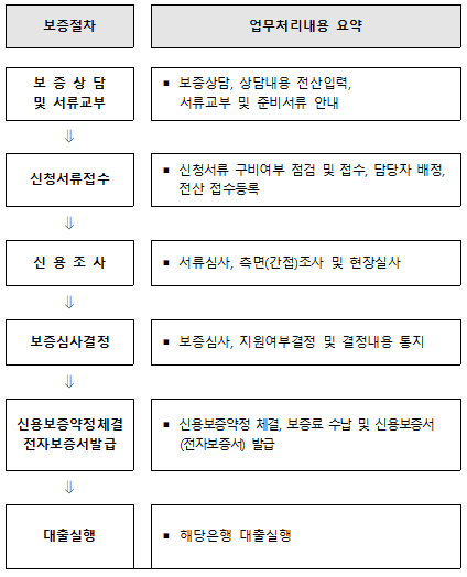 한편, 보증신청 서류와 관련한 자세한 사항은 전국 지역신용보증재단과 신용보증재단중앙회를 통해 안내받을 수 있다.
