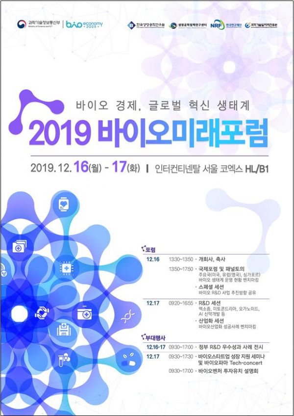 올해로 다섯 번째를 맞는 바이오 미래포럼은 ‘바이오 경제, 글로벌 혁신생태계’를 핵심메세지로 삼고 우리나라 바이오 산업의 지속가능한 성장을 위해 우리나라 바이오 생태계의 발전방향을 모색한다.