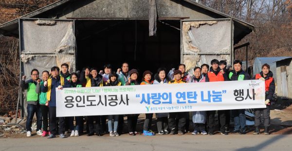 [미디어라이프(medialife)] 용인도시공사는 지난 13일 사내 나눔봉사단과 임원, 노조 간부 등 20여명이 처인구 남사면 취약계층 등 관내 어려운 이웃 10개 가정과 시설 등에 연탄을 배달했다고 밝혔다.