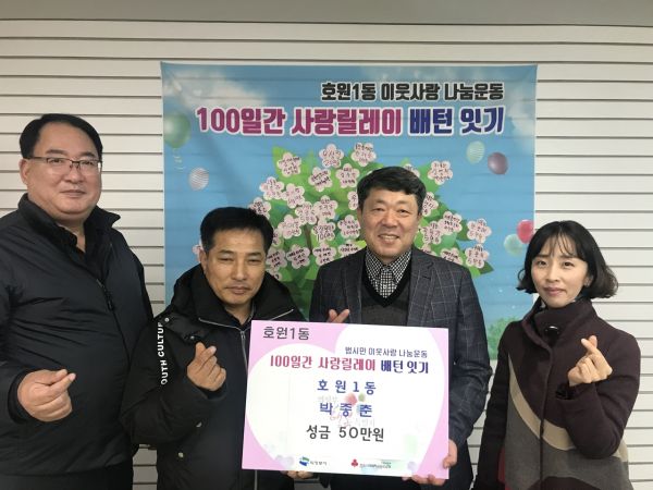 이날 기탁된 성금은 호원1동 맞춤형복지팀에서 도움이 필요한 지역사회 소외계층을 위해 사용할 예정이다.