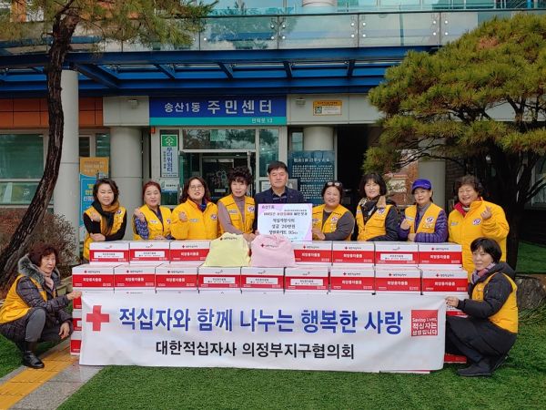 이번 위문품은 대한적십자사 의정부지구협의회가 지난 1년간 각 동 봉사회의 봉사실적을 토대로 실적이 가장 높은 동에게 주는 인센티브제도와 같은 것으로 올해는 송산1동 적십자 봉사회가 그 주인공이 된 것이다.