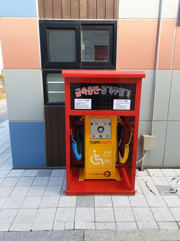 전동보조기기 급속충전기는 보건복지부로부터 예산을 전액 지원받아 전동휠체어나 전동스쿠터를 사용하는 장애인 및 어르신들이 외출 시 급작스런 방전에 대비할 수 있도록 도시철도 역사와 공원 등에 설치돼 있다.
