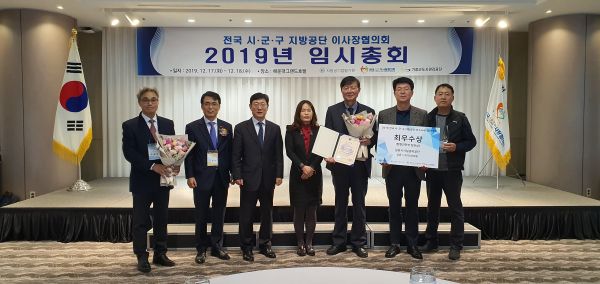 이번 수상은 지난 10월 15일 부평관광호텔에서 전국 지방공단이사장협의회가 주최하고 행정안전부, 지방공기업평가원이 후원한 ‘2019년 전국 지방공단 우수사례 경진대회’에서 ‘음식물자원화시설 스크류식 탈수기 개발’에 대한 우수사례를 발표해 최우수상에 선정된 것에 따른 것이다.