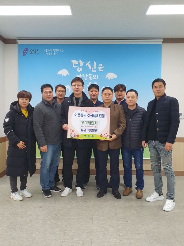 처인구 역삼동에선 역북동 우미린센트럴파크 아파트 주민들로 구성된 자율방범단 ‘우미레인저’가 십시일반 모은 성금 100만원을 기탁했다.