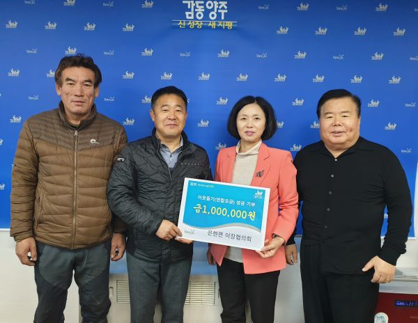 남경선 은현면장은 “언제나 주변 어려운 사람들을 살피며 앞장서서 봉사하는 이장협의회에 깊이 감사드린다”며 “모아주신 소중한 성금은 도움이 꼭 필요한 분들에게 알맞게 전달하도록 하겠다”고 말했다.