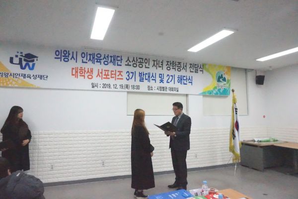의왕시 인재육성재단에서 신규 사업으로 추진한 소상공인 자녀 장학금 지원사업은 소상공인의 경영부담이 가중됨에 따라 장학금 지원을 통해 교육 사각지대를 완화하기 위해 추진한 사업이다.