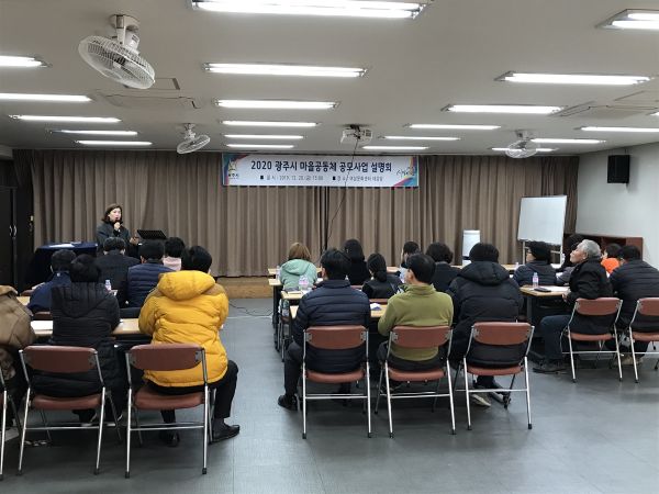 이번 설명회는 마을공동체에 관심 있는 예비공동체와 마을활동가를 비롯한 시민 50여명이 참석했으며 내년도 마을 공동체 공모사업을 앞두고 ‘광주시 행복마을만들기 공모사업’, ‘경기도 마을공동체 주민제안 공모사업’에 대한 사업설명과 마을공동체 사업에 대한 주민 이해도를 높이고자 마련됐다.