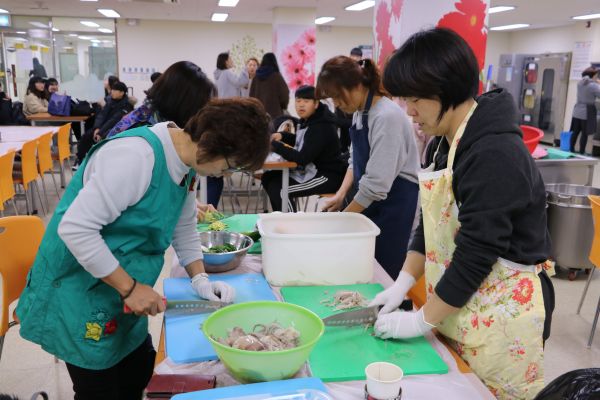 한마음가족 봉사단이 직접 만든 만두로 떡만둣국을 끓여 어르신 식사대접