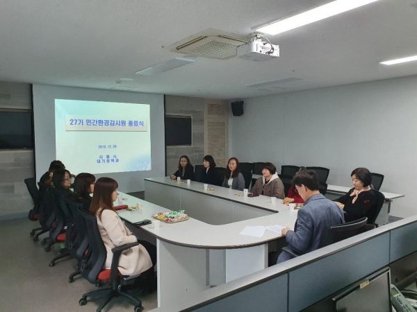 이날 종료식에는 대기정책과장, 관련 공무원 그리고 제27기 민간환경감시원 등 총 20여명이 참석한 가운데, 활동에 따른 그간의 성과에 관해 설명했다.