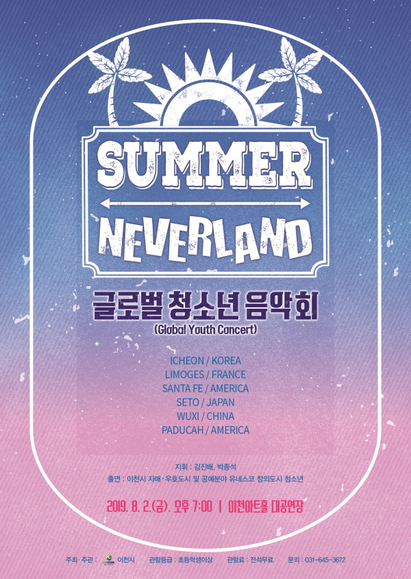 글로벌 청소년음악회는 이천시의 국제자매·우호도시, 유네스코 창의도시, 그리고 이천시의 청소년들이 한 데 모여 오케스트라를 구성하고 아름다운 하모니를 만들어 낼 예정이다.