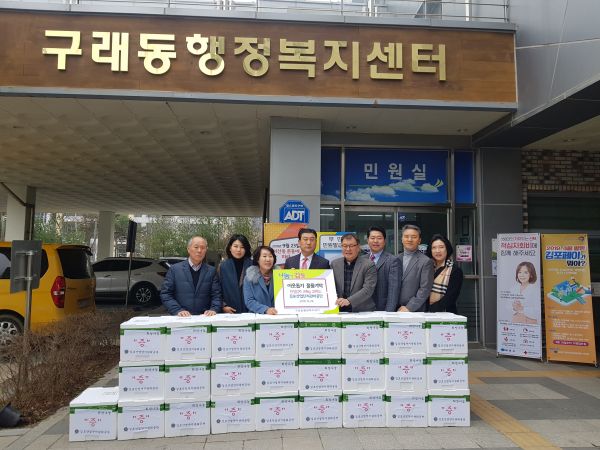 지난 23일 김포시건강가정지원센터에서 관내 한부모가족을 위해 쌀 10kg, 10개와 떡국떡 20개를 구래동행정복지센터에 전해왔으며 이어 26일에는 김포산업단지관리공단에서 명장의 포기김치 20kg, 25박스와 성금 450만원을 전달했다.