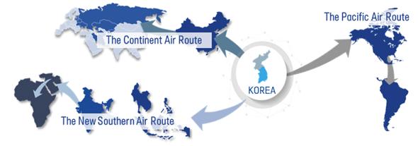 CIS 중심, ASEAN 등 신남방 중심, 미주 중심 태평양 거점 강화 등 세계속으로 뻗어 나가는 에어실크로드 3개축 전략을 통해 항공네트워크를 강화하고 새로운 시장을 개척한다.