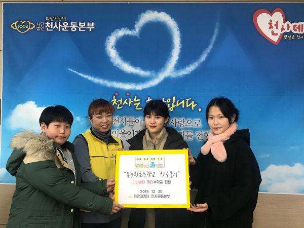 한편 김영호 천사운동본부장 “요즘 경제적으로 어렵다고들 많이 하시는데, 이렇게 착한 후원을 해주시는 분들 덕분에 세상은 아직 훈훈함으로 가득한 것 같다 우리 이웃들에게 따뜻하고 감동적인 나눔을 실천해 준 동두천초등학교 학생들이야말로 세상에서 가장 예쁜 천사들”이라며 고마움을 전했다.