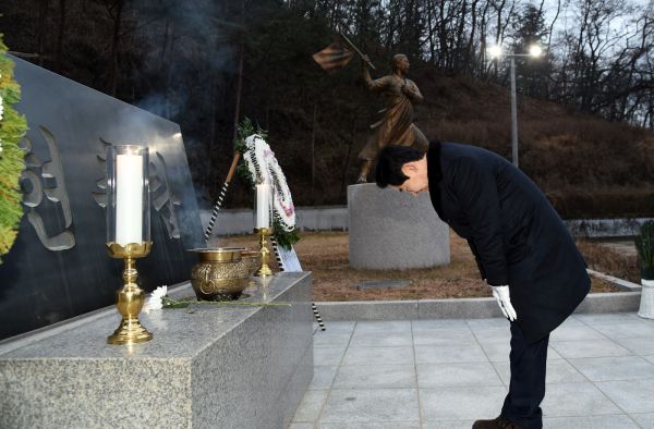 ???? 신년 참배에는 안병용 의정부시장을 비롯해 의정부시의회 의장, 보훈단체 및 도·시의원, 기관단체장, 시청 간부공무원 등 120여명이 참석했으며 순국선열과 호국영령들의 숭고한 넋을 기리고 새해 힘찬 출발을 다짐하는 시간을 가졌다.