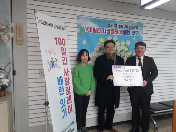 심진주 호원1동장은 “호원1동의 100일간 사랑릴레이 배턴 잇기 운동이 활기차게 추진될 수 있도록 도움을 주셔서 감사드리며 동 주민센터에서도 어려운 이웃들이 따뜻한 겨울을 보내실 수 있도록 더욱 노력하겠다”고 말했다.