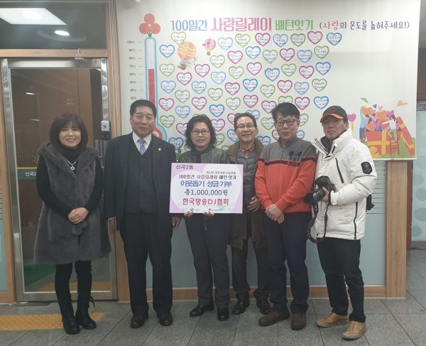김정미 신곡2동장은 “100일간 사랑릴레이 배턴 잇기에 동참해주신 한국방송DJ협회 장민 회장 및 회원들에게 진심으로 감사드리며 기부하신 성금을 취약가구의 난방비로 잘 전달하겠다”고 밝혔다.