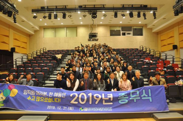 이날 종무식은 재단을 위해 공헌한 분들과 각종 평가에서 우수한 성과를 달성한 직원 표창에 이어 2019년도 재단의 주요 성과를 담은 영상 상영, 이종상 대표이사의 송년인사 그리고 한 해 동안 고생한 직원들을 위한 행운권 추첨 순으로 진행됐다.