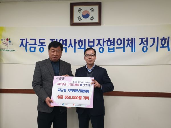전정일 자금동장은 “지역사회보장협의체 위원님들의 적극적인 활동과 기부에 감사드린다”며 “기탁된 성금은 소중한 뜻에 따라 관내 취약계층을 위해 사용하겠다”고 말했다.
