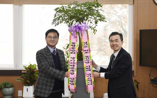화환을 전달하고 담소를 나눈 이성남 지부장은 “경기도 최초로 여주시가 농민수당을 주게 돼 자부심을 느낀다”며 여주시의 농민수당 지원이 전국적으로 파급되기를 희망한다고 말했다.