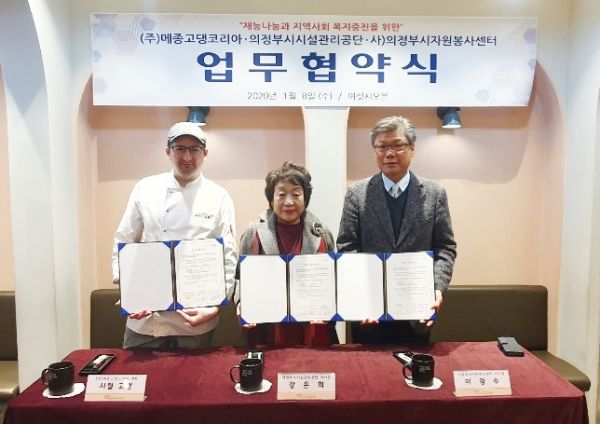 [미디어라이프(medialife)] 사단법인 의정부시자원봉사센터는 지난 8일 제과제빵 업체인 메종고댕코리아 · 의정부시시설관리공단과 지역사회 재능나눔지원 및 지역사회 연계를 위한 업무협약을 체결했다.