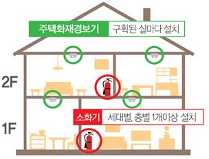 단독주택은 소방시설이 갖추어진 아파트 등 공동주택과 달리 화재 발생에 취약하므로 화재 시 경보음이 울리는 주택화재경보기를 설치하고 소화기 등을 구비하도록 한다.