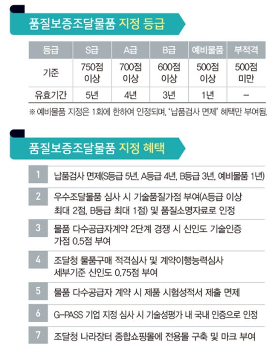 우수조달물품 심사 시 기술·품질 가점, 조달청 물품구매 적격심사 신인도 가점 등의 혜택도 받게 된다.