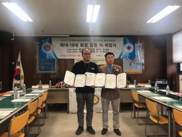 [미디어라이프(medialife)] 국제 로타리3690지구 김포대양로타리클럽은 지난 23일 제18·19대 회장 이취임식에서 양촌읍 관내 저소득 학생들을 위해 써달라고 장학금 120만 원을 기탁했다.