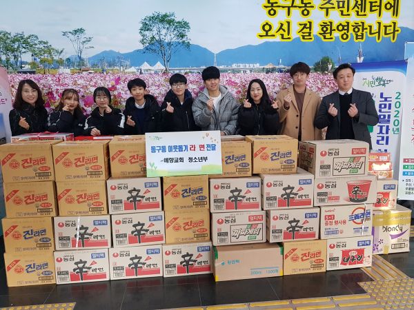 이날 전달된 라면은 지난해 12월 29일 예향교회 청소년부가 주위의 어려운 이웃들을 돕고자 ‘라면 콘서트’를 개최해 티켓 대신 받은 라면을 전달한 것이다.