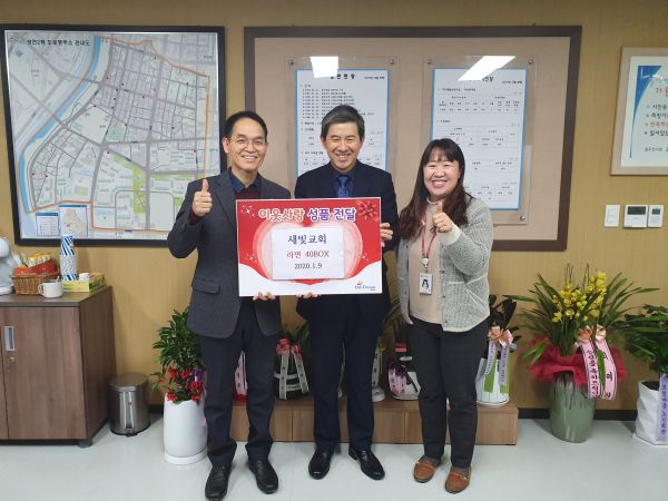 새빛교회 김형기 담임목사는 “곧 있을 설을 맞이해 라면을 기탁하게 되었는데, 생활이 어려운 이웃에게 조금이나마 도움이 됐으면 좋겠다.