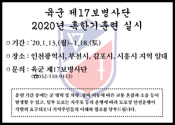 훈련으로 인한 문의 및 불편사항 신고는 제17보병사단으로 하면 된다.