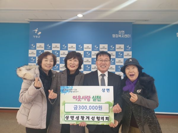 이진모 상면장은 “이웃돕기 성금기부를 통해 행복 나눔을 실천해주신 상면생활개선회 회장님과 회원 분들께 감사의 말씀을 드린다”며 “보내주신 성금은 도움이 필요한 가정에 따뜻한 마음을 담아 잘 전달하겠다”고 말했다.