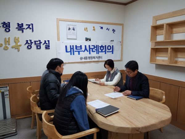 이날 회의는 올해 송내동으로 발령된 동장과 사례관리 및 장애인복지 담당자가 참석해, 현재 사례관리대상자로 관리되고 있는 4가구에 대해 전반적으로 서비스 점검을 실시하고 기존 제공된 서비스와 추가적인 지원 계획에 대해 폭 넓게 논의했다.