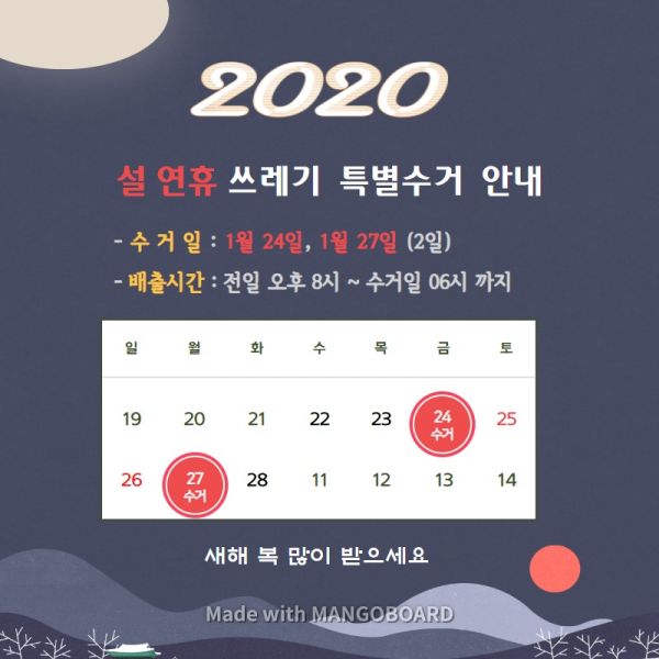 [미디어라이프(medialife)] 부천시가 시민들이 쾌적하고 편안한 설 연휴를 보낼 수 있도록 연휴 첫날과 마지막날에 생활쓰레기를 특별 수거한다고 15일 밝혔다.
