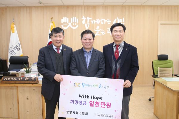 [미디어라이프(medialife)] 광명시는 지난 14일 광명시청소협회에서 이웃돕기 성금 1천만원을 광명희망나기운동본부에 전달했다고 밝혔다.