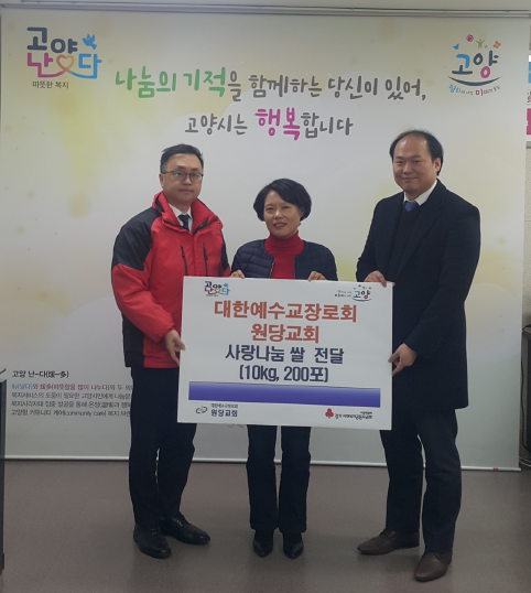 고양시 덕양구 주교동에 소재한 원당교회는 10여 년 동안 매해 명절 전후로 어렵고 힘든 이웃들에게 보탬이 되고자 고양시 관내 저소득가정을 위한 사랑의 쌀을 기부하고 있다.