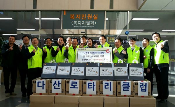 최형선 남양주다산로타리클럽 회장은 “설 명절을 맞아 다산동에 소외되는 이웃 없이 행복한 명절을 보내기를 바라는 회원들의 마음을 담았다 필요한 이웃들에게 잘 전달되기를 바란다”며 전달 취지를 전했다.