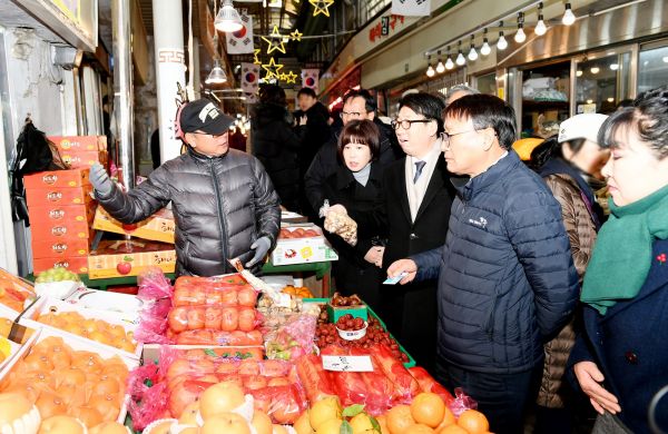 최종환 시장은 점포마다 일일이 들러 경기불황으로 어려움을 겪고 있는 상인들의 의견을 청취하고 격려하는 시간을 가졌으며 물건을 구매하는 시민들과 덕담을 나누면서 전통시장을 더 많이 이용해 줄 것을 당부했다.