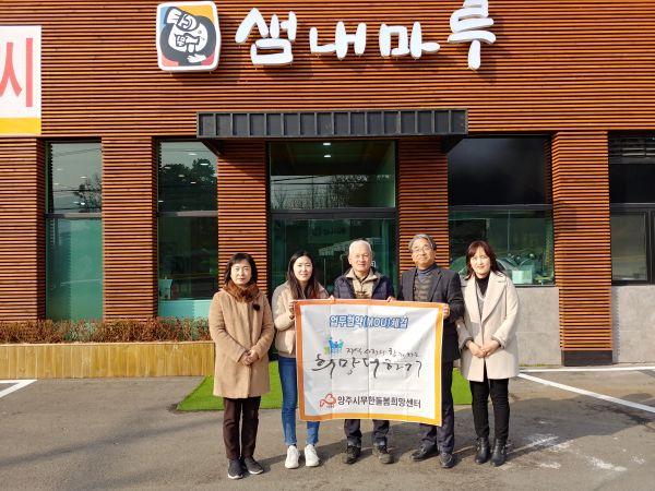 [미디어라이프(medialife)] 양주시무한돌봄희망센터는 ‘샘내마루’와 지난 10일 저소득 영양취약가구의 식생활개선에 대한 MOU를 체결하고 22일부터 지역 내 독거노인, 장애인, 조손가구 10가정에 매주1회 곰탕을 지원하기 시작했다.