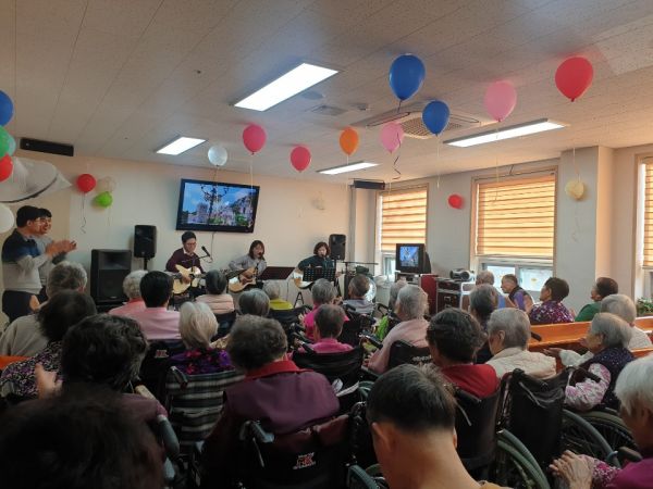 이날 배움누리 청소년들은 요양원 청소와 어르신 식사 대접 봉사활동을 했고 한마음봉사단과 함께 어버이 은혜 등 노래 공연도 진행했다.