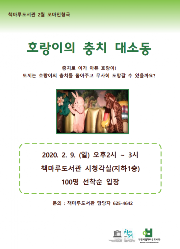 [미디어라이프(medialife)] 부천 책마루도서관은 겨울방학을 맞아 오는 2월 9일 어린이 치아 교육을 위한 창작 인형극인 ‘호랑이의 충치 대소동’을 공연한다.
