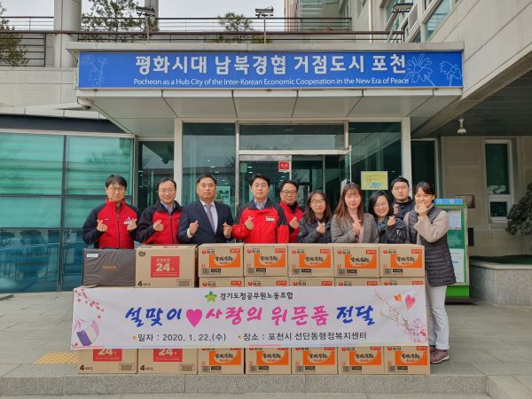 양영근 선단동장은 “경기북부 포천시 선단동까지 설 명절 선물을 전달해준 경기도청 공무원노동조합에 진심으로 감사를 드리며 후원물품은 꼭 필요한 분들께 전달하겠다”고 말했다.