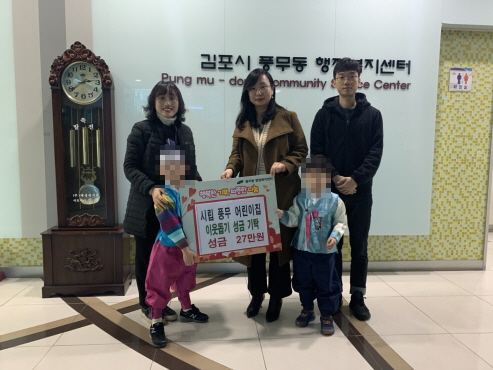유정호 풍무동장은 “어려운 이웃들을 위한 정성어린 기부에 진심으로 감사드리며 아이들의 따뜻한 사랑을 담아 의미 있는 곳에 잘 전달하겠다”고 고마움을 전했다.