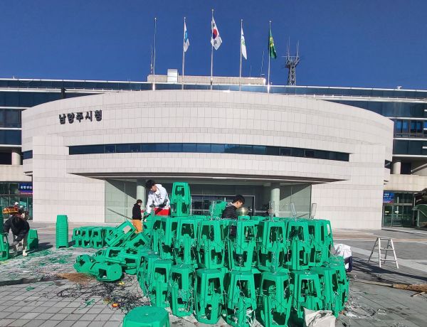새롭게 조성된 시청 열린광장에 기존의 틀을 벗어나 제작된 친환경 성탄트리는 나눔과 자원 재순환의 의미를 더해 사용했던 모든 재료가 재사용이 가능하다.