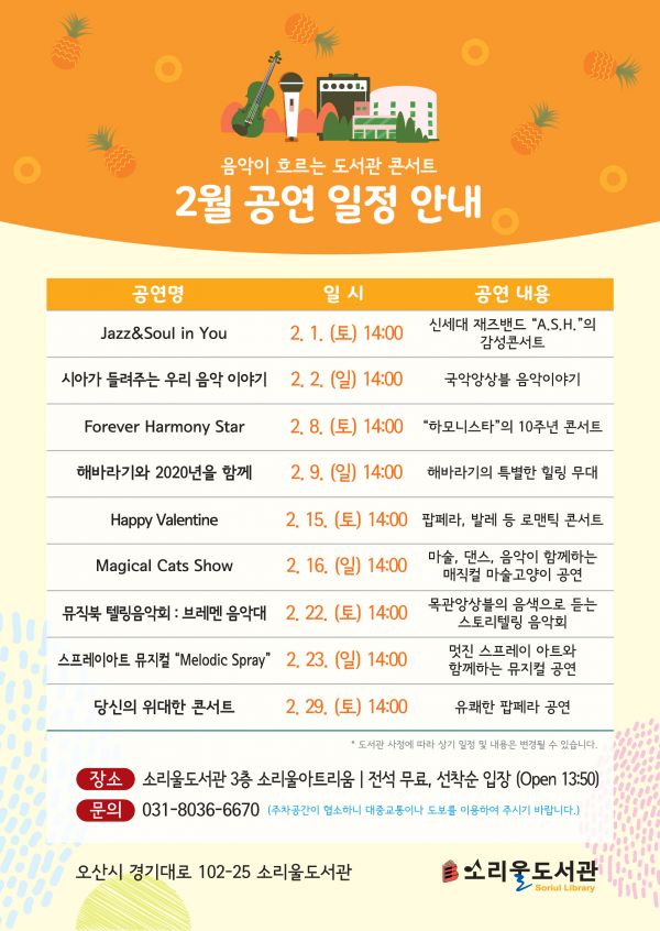 2월 22일 토요일 오후 2시에는 ‘뮤직북 텔링음악회’가 예정되어 있다.