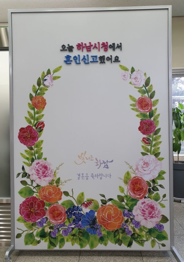 포토존은 화사한 꽃을 배경으로 하남시 민원여권과에 설치됐다.