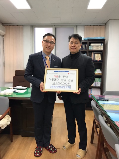 이번 성금은 한파에 취약한 저소득가정을 위해 100만원의 성금을 생계비 및 난방비로 지원할 예정이다.