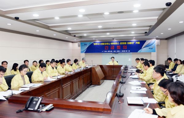 이날 회의에는 최종환 파주시장을 비롯해 파주시 국·소·과장이 참석해 신종 코로나바이러스감염증 확산으로부터 시민을 보호하기 위한 부서 간 현실적이고 구체적인 대책 논의가 진행됐다.