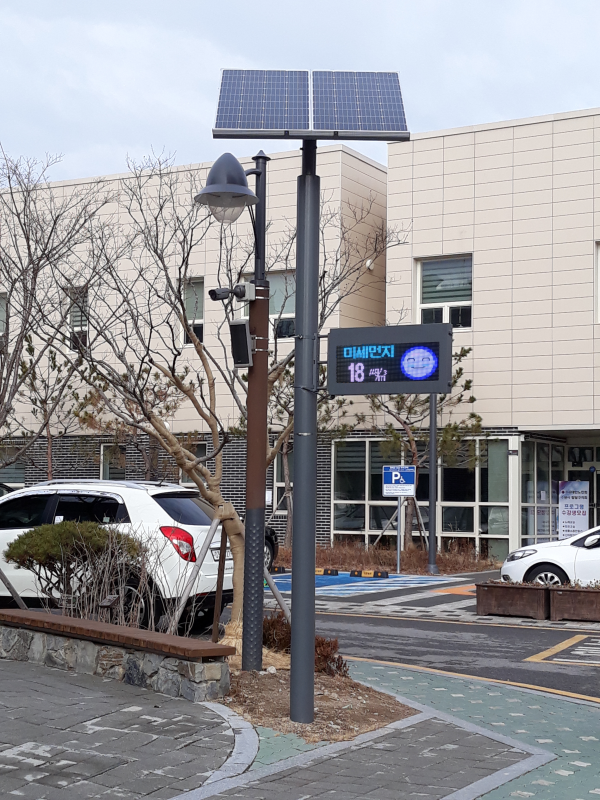미세먼지 정보는 설치지점과 근접한 도시대기측정소의 미세먼지 측정결과를 전송받아 제공한다.