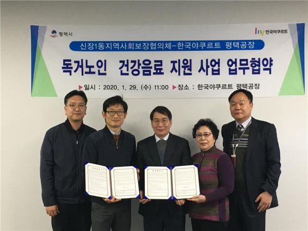 신순재 신장1동장은 “지역주민의 복지증진을 위해 업무협약을 맺고 후원 물품을 지원해주신 ㈜한국야쿠르트 평택공장에 감사드리고 이번 협약은 지역 주민이 직접 찾아가는 복지를 수행하는 데 의의가 있다”며 “앞으로도 민관 협력을 통해 복지사각지대를 발굴해 안전하고 행복한 도시를 만들 수 있도록 최선을 다하겠다”고 말했다.